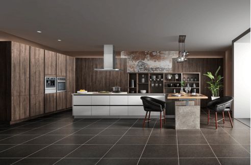 其中,I系列是司米橱柜最新推出的产品系列中较受欢迎的一款产品,该产品以暖木棕色调为主,于冰冷的水泥城市中,为用户营造出了浪漫而摩登的厨房空间氛围。