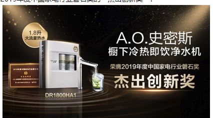 A.O.史密斯橱下冷热即饮净水机荣膺2019中国家电行业磐石奖