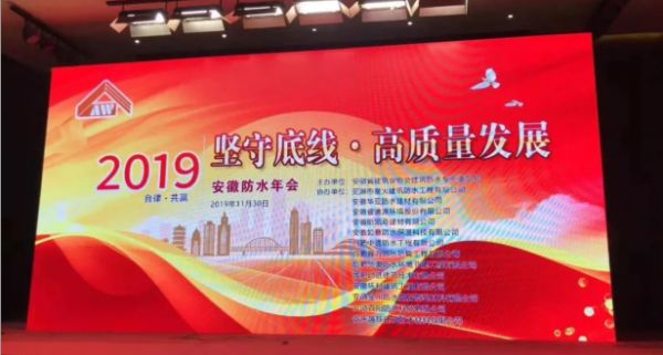 11月30日,安徽省建筑业协会建筑防水专业委员会2019年会隆重召开,安徽省住建厅、安徽省建筑业协会、其他省会兄弟协会领导、各协会会员单位济济一堂,共襄盛举。年会以"坚守底线·高质量发展"为主题,安徽省建筑业协会建筑防水专业委员会会长廖绍锋做2019年年度工作报告,加快速度推进安徽防水企业质量提升。