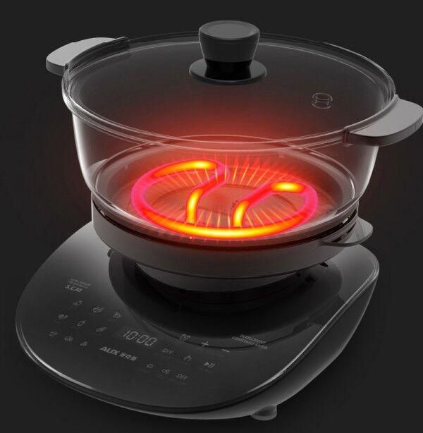 独特的超薄底座在众多破壁机中脱颖而出。这款破壁机底座之外还配备一个玻璃杯体,可以制作破壁料理;放上加热底盘和多款烤盘,就可以开发出煎、烤、煮、焖、炖、焗、涮等功能。