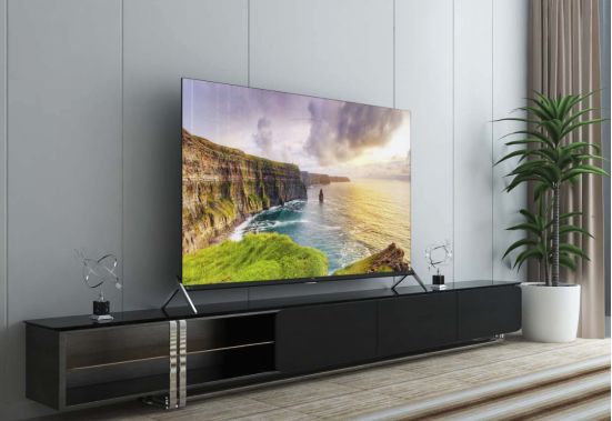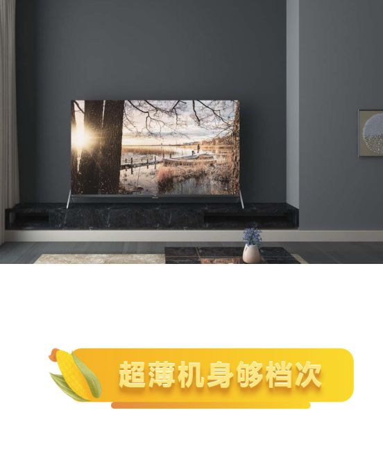 这款电视让我心水的不仅是流畅的播放效果,更是爱它“锋利又圆润”的大屏外观。说它锋利,是因为它超薄的机身只有8.7mm厚,如冷光闪烁的利刃一般能很好地融入极简主义风格的家具之中,有质感又不破坏家中格调;说它圆润,是因它采用ART5圆角工艺制造的全面屏边角圆滑温润,屏幕紧紧贴合在金属边框上,复合膜工艺减少了内屏碎裂和屏幕漏光发生的概率,使电视的质感更上一个档次。