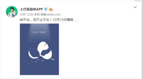 看来目前土巴兔释放出来的谜题只有等到12月13日才能得到答案了,但是从土巴兔多年的在技术、供应链、金融等领域的布局来看,也正如微博文案一样“始于此,而不至于此”,未来,也期待土巴兔可以给整个家装产业注入更多的新能量。
