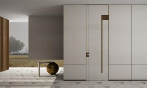 木里木外2019新品门以不同构成线条为特色,与“木饰面、皮革、金属、布艺、混油”等多种材质混合配搭,设计师或业主可以根据场景属性,创造出不同的空间效果和风格。