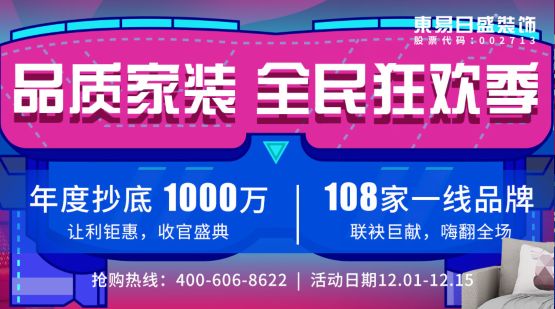 国民上市家装品牌东易日盛装饰“预见·新家——跨年预售盛典”已在全国200余城盛大开启,东易日盛成都分公司联袂108家一线主材品牌让利1000万,多重壕礼钜惠狂欢跨年,力度空前。保价2020,绝不让你买贵,以超低价格享受高端居家品质!