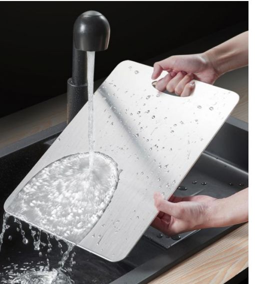 跟市面上大量的木质砧板不同,卡贝这款砧板采用了不锈钢材质。