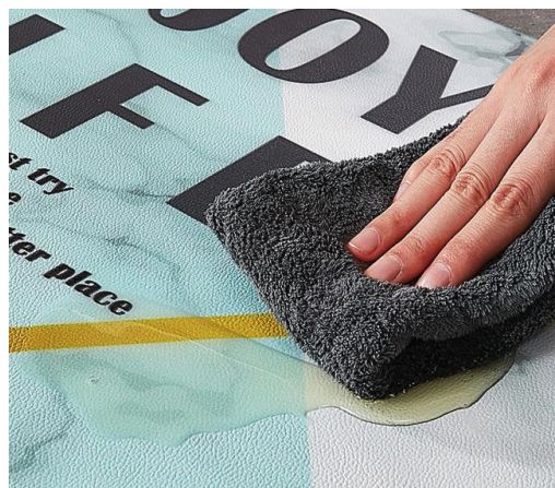 卡贝厨房地垫主要的作用就是应对厨房湿滑的环境,正面为荔枝纹设计,可以加大脚底摩擦系数,底部为PVC防滑底胶,沾水也不易打滑。