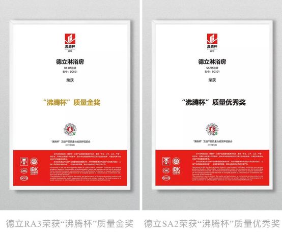 筑造标杆|德立淋浴房荣获“沸腾杯”质量金奖等多个大奖