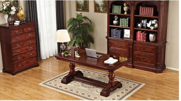 由一统国际家居圣地亚哥纯正美式系列家具打造的书房,结实耐用的橡胶木材质,健康环保保证周围新鲜的空气。装扮古色古香,四下洋溢着浓郁的文化氛围,错落放置的几株绿植,更为书房增添了几分儒雅。