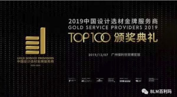“中国设计选材金牌服务商TOP100”称号