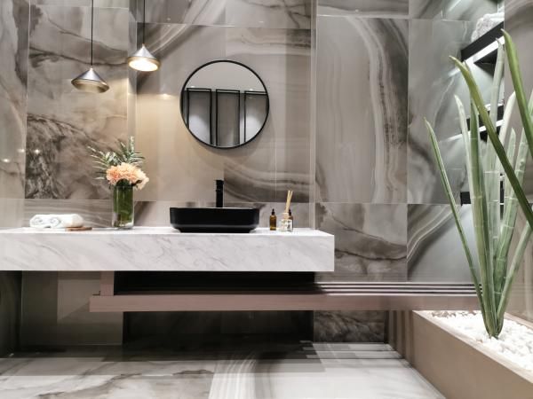 SDK瓷砖拥有完善的产品体系,规格从大板1200*2400mm、800*2400mm、750*1500mm、600*1200mm到800*800mm不等,产品有通体、白坯、光面等多种工艺,兼具耐磨、高硬度、防滑等优越物理性能,超150种品类满足各式家居、工程项目的要求。