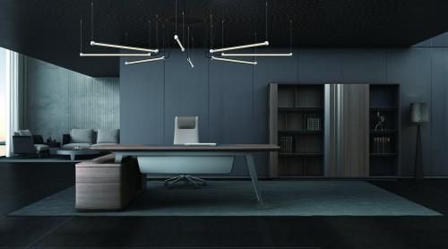 据了解,作为冠臣获奖“双子星”之一的极简轻奢产品荣耀之作,取名法拉利设计之父的ENZO系列产品与法拉利外形特征相融合,颇具时尚与科技感。15°斜面包皮设计的班台边缘,在贴合手腕角度以及牛皮柔和的触感时,进一步提高用户舒适度。而灯光之下,中西合璧的文件柜格栅设计,不仅科技感十足,而且散发着浓浓的东方韵味。