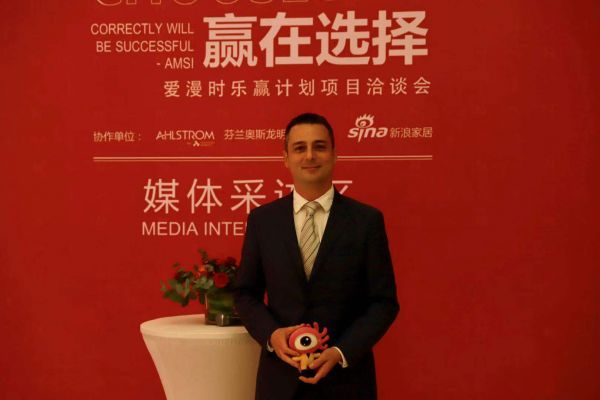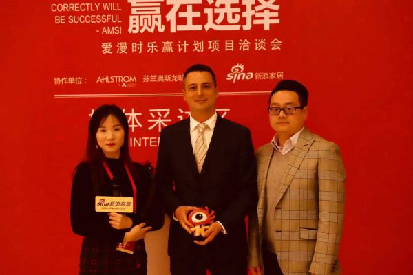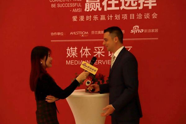 【新浪记者】 :各位观众大家好,我是新浪家居墙布频道的记者黄玉,今天我所在的地方是2019“赢在选择”爱漫时乐赢计划项目洽谈会的现场,非常荣幸能够邀请到芬兰奥斯龙明士克集团亚太区副总裁:Giuseppe Costa先生接受我们的采访。Giuseppe先生您好,可以跟我们现场的观众朋友们互动一下吗?