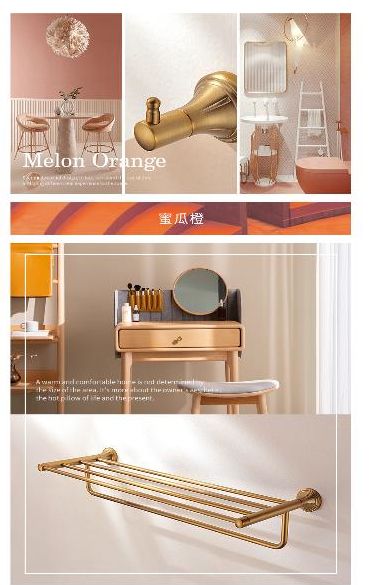 2020年春夏流行色:薄荷绿、清水蓝、黑加仑紫、蜜瓜橙、古金黄。 面对这么多好看的颜色,要是运用在卫浴家居,那小小的五金配套挂件该如何搭配呢?