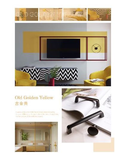 古金黄明亮但不过分艳丽,考虑将墙面涂黄,能让空间有一种洒满阳光的感觉,同时也可以为采光不佳的卫浴空间增添了一份光线感。另外选择一两件黑色小拉手单品装饰,看似漫不经心,实则内涵丰富且低调。