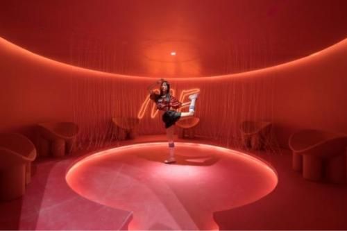 安静祥和的绿色空间,内置大型波波池和攀爬梯,这是瑜伽老师的主场;神秘酷感的黑色空间,不断变化的月相和打碟机,代表着在夜晚释放魅力的DJ;时髦的橘粉色空间,满墙的口红和大大的镜子,美妆博主形象跃然纸上……设计师想传达一个理念:在新时代里,每一个职业都各自“出色”,都值得被尊重。