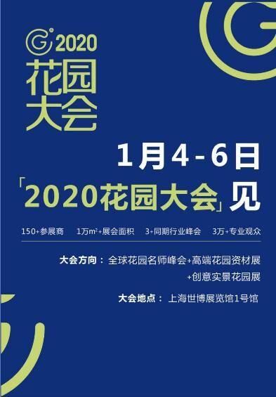 2020年1月4日-6日,第三届中国庭院与花园园艺展览会(简称“2020花园展会”)将在上海世博展览馆1号馆隆重开幕。同期还将举办2020花园大会,全球花园名师荟聚一堂,国际范儿十足。第五届中国造园行业峰会、第四届园集奖颁奖盛典、第三届中国庭院发展高峰论坛、中国花园生活风尚大典……一系列活动的开展,让2020花园展会精彩纷呈。