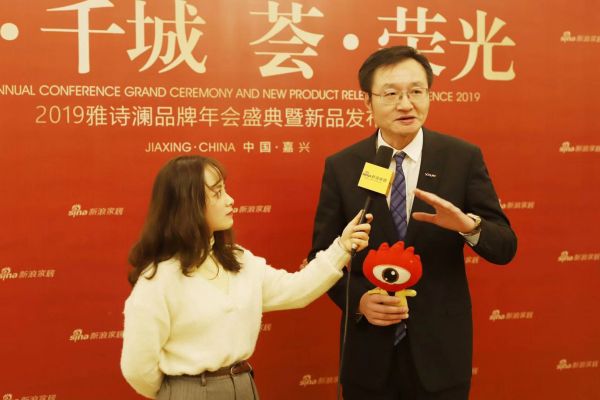 【新浪记者】:各位新浪网友大家好,我是新浪家居墙布频道的记者罗路路,我现在所在的位置是“瞰·千城 荟·荣光”2019雅诗澜品牌年会盛典暨新品发布会现场,非常荣幸能够邀请到雅诗澜董事长邹胜平先生接受我们的采访,邹总您好。您个人是如何解读本次大会的主题“瞰·千城 荟·荣光”的?