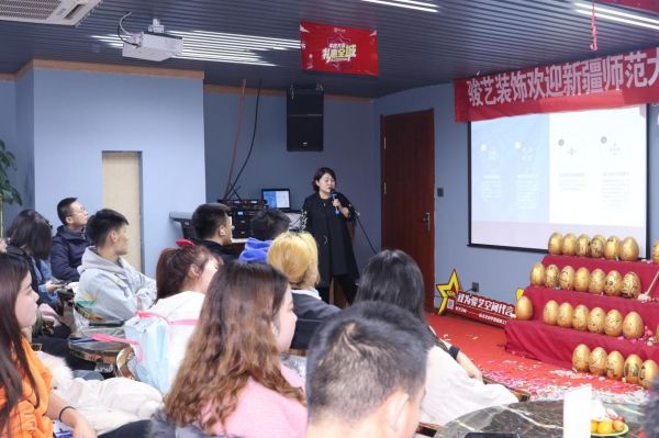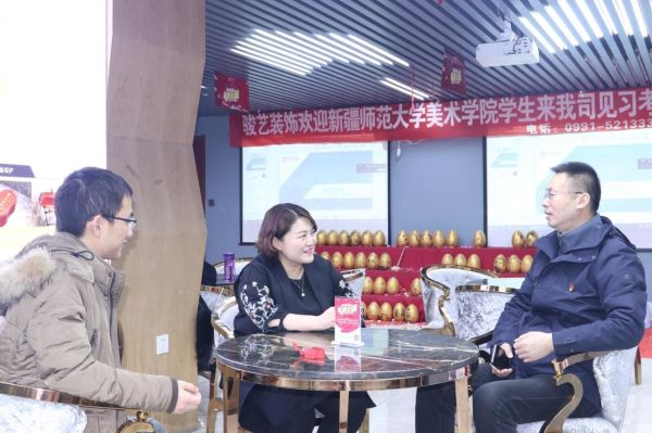 下午三点,新疆师范大学美术学院副院长李文浩带领36名大二学生来到骏艺空间装饰公司,骏艺装饰店长李金娟及恒想创客负责人徐松安排接待了各位师生。