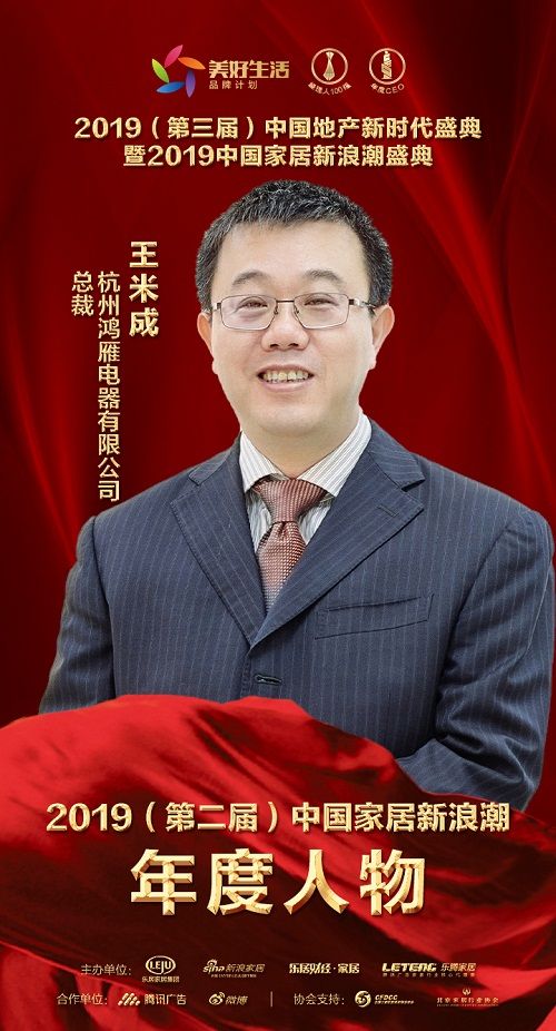 快讯:鸿雁电器王米成荣获家居2019年度新浪潮影响力人物