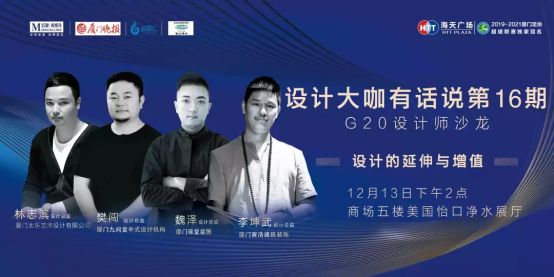 12月13日14:00,尚居汇G20设计大咖有话说设计师沙龙08期在五缘湾海天广场·红星美凯龙商场 5楼怡口净水展厅 成功举办。本次大咖讲堂也同样星光熠熠,邀请了林志滨、樊闯、魏泽、李坤武 四位大咖莅临现场对自己多年的设计经验和心得与大家进行交流互动。