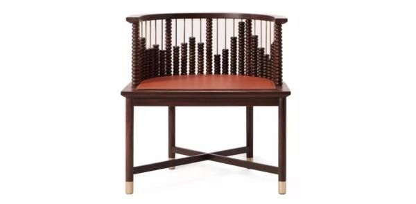 比如说他的“之间茶几”,几面以暖调琉璃砖拼配而成,看来就像一块大琥珀,玲珑动魄。在中国古代,琥珀亦作“虎魄”,被视为是由老虎流下的眼泪凝固而成,就似封存了这些大家伙的勇气,是人们心中的圣物。与之相较,“算椅”的黑檀木椅背玩味地使用了算珠子的意象,趣味与端庄共融。另一件家具“一轮”圆柜,圆面边缘内嵌了一轮亮光,与纵横交织的木线一道,似象征着中国人“天圆地方”的朴素宇宙观。