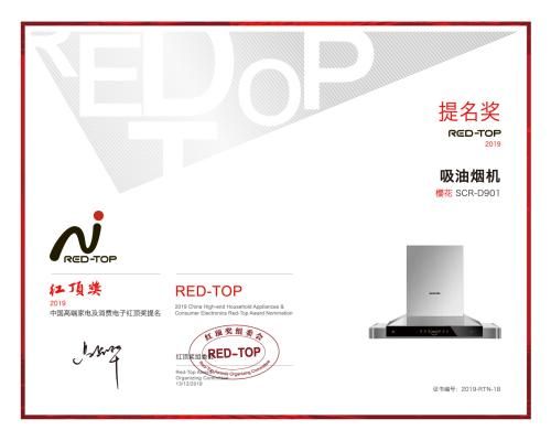 红顶奖的创办旨在通过消费者评选结合专家的评审,选出年度内技术领先、外观设计优秀、并有很好的市场影响力的高端产品,以点带面促进产业结构转型,引导消费有序升级。此次获得红顶奖提名奖的SAKURA樱花SCR-D901吸油烟机,直击用户关于油烟倒灌、排烟有阻力、除烟不及时等痛点,为用户打造健康无烟厨房。