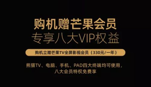 据悉,用户购买55D8U和50D8U均会赠送价值330元的芒果TV全屏影视会员,在熊猫电视、电脑、手机、PAD四大终端均可以使用。用户在观看跨年晚会时不仅可以跳过广告,而且可以享受蓝光画质以及相应的节目周边等八项会员特权。