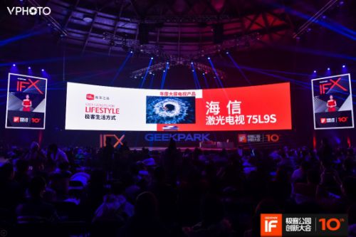 12月22日,中国科技圈年度盛会“极客公园创新大会十周年GeekPark IFX”在北京落幕。在年度产品评选中,海信激光电视75L9凭借“广色域、临场感、舒适护眼”的差异化优势,一举摘得“年度最佳大屏电视产品”。