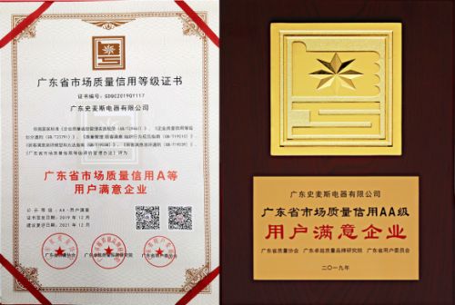 近日,“2019满意中国年会暨全国市场质量信用建设交流大会”于珠海隆重举行,会上颁发了全国市场质量信用A等企业名单。其中,史麦斯电器凭借着良好的信用状况和综合实力,荣获中国质量协会、全国用户委员会颁发的“全国市场质量信用A等用户满意产品”称号(全国市场质量信用等级:AA)。
