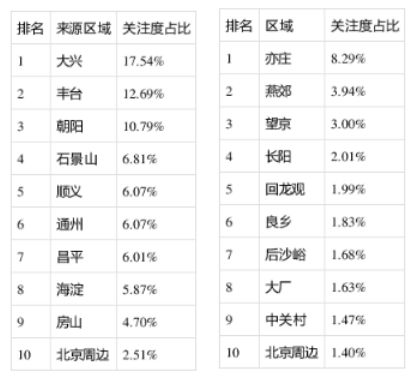 12月北京新房关注度大数据 亦庄排商圈关注度首位