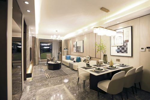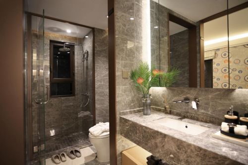 主要材料| 云多拉灰大理石、水曲柳木饰面、壁纸、皮革硬包、不锈钢