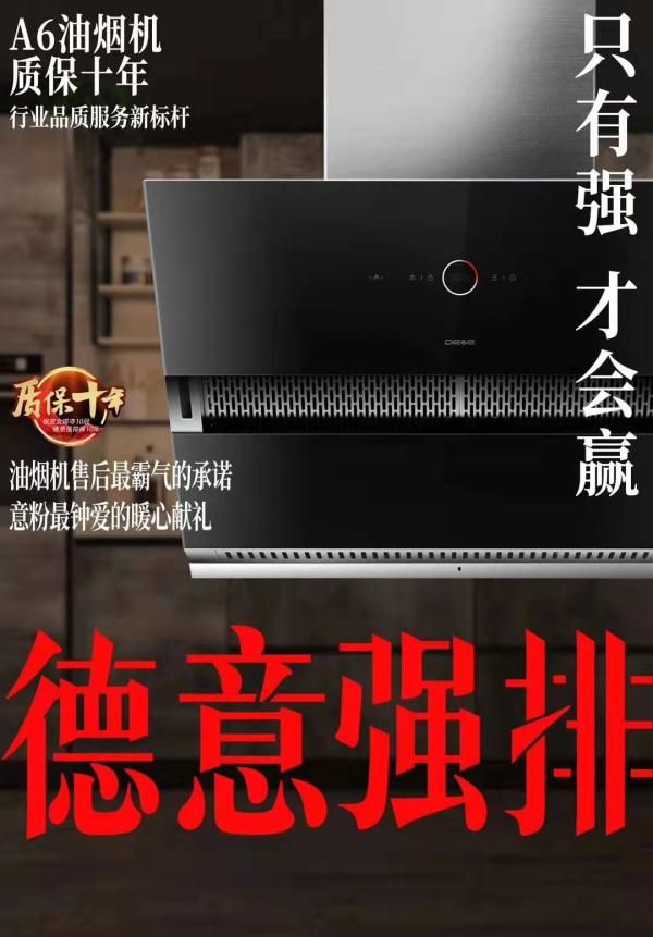 基于对冠军品质的自信,德意推出“A6质保十年”服务升级战略。在此之前,市场上油烟机的质保年限普遍处于五年以内, 保修期短、承诺包修却不作为,以及用户体验差等问题,一直困扰着消费者。德意“质保十年”推出后,这一系列的问题都能够得到解决,甚至有望倒逼行业品质升级。