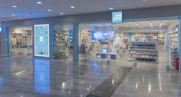 2019年4月,位于上海正大广场的ONE ZONE门店以全新的品牌形象升级开业,店内色彩以蓝色、浅灰色为主,突出简洁、时尚的店铺特质。