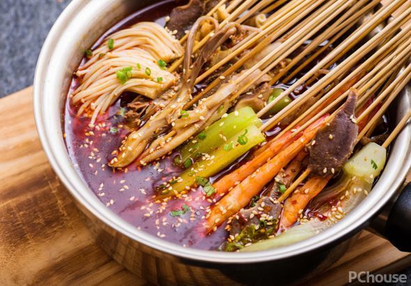肉肉吃完了,汤底也不要浪费,加入热水就可以开始涮菜了,重口味的小伙伴还可以选择放点牛油火锅底料,之后把土豆、青菜穿成串丢进锅里就完事了。一个小砂锅就把两道硬菜端上了餐桌,让你在这个冬天里收获双倍快乐!