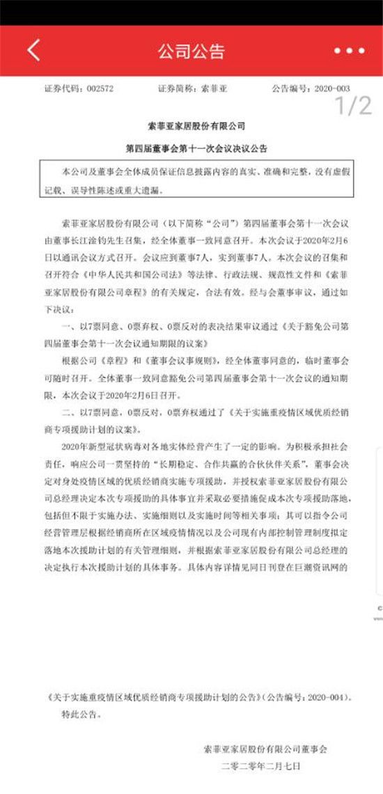 为了积极承担社会责任,响应公司一贯坚持的“长期稳定、合作共赢的合伙伙伴关系”, 帮助经销商共渡难关,今日,索菲亚家居宣布启动“重疫情区域优质经销商专项援助计划”,为身处疫情严重区域的优质经销商提供3亿元信用支持,与大家风雨同舟、共抗疫情!