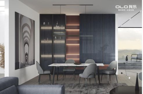 把宇宙星河搬回家是种什么样的体验?我乐家居全屋新品“星云”系列,配色时尚独特,采用箭羽蓝搭配维希红,大胆的配色,形成了强烈而鲜明的色彩对比,让静谧的餐厅空间缓缓升温。