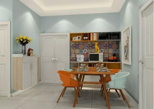 针对一居室或者开间,可以在进门区域一角打造一个备餐、用餐区,高效利用客厅空间。