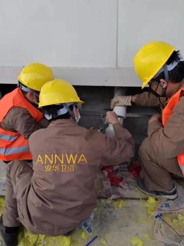 到达现场后,洁具还没有安装面,但是大家也没有休息。搬楼板、开孔、接排水管……只要事能做的事,大家都抢着做,“因为时间紧大家都在抢工,为了保质保量大家每天晚上我们每天晚上都加班加点的干,下班前都要巡查一遍。”