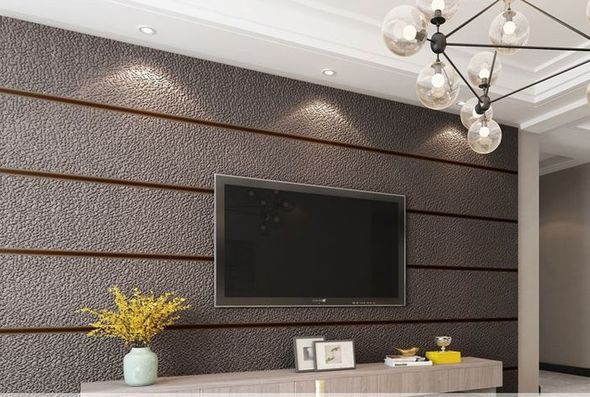 这款鹿皮绒立体横条纹电视背景墙纸是硅藻泥质地,凹凸有质感,颗粒饱满,超强3D立体视觉,表面的微孔有一定的降噪功能,能降低回响。且艺术性强,提高了背景墙的美感。