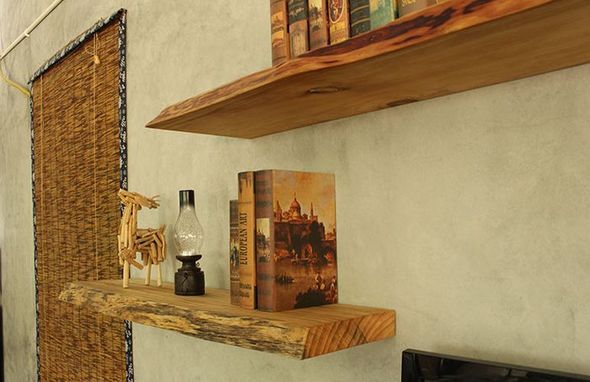 这是一款保存着大自然原汁原味的电视墙原木置物架,大自然的鬼斧神工,原木不规则边,没有人工处理弧度。采取自整块原木,保存木纹的完整性、连续性,清晰的年轮,让人感受到了时间的断点,天然木眼,保留原始的美感。