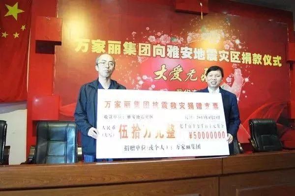 2013年4月24日万家丽向四川雅安地震灾区捐款50万元;