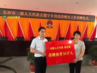 2017年7月3日至17日宁乡水灾三赴宁乡捐款50万元共二十大卡车物资。多年来共捐款捐物二千余万。