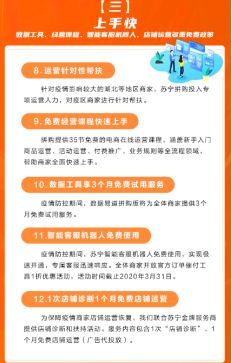 在官宣的助农18条措施中,对“触网”不深、网店运营知识不足的农户,苏宁拼购全程提供一对一入驻指导,开通滞销农产品绿色通道(QQ群:983263017),苏宁科技研发及产品团队实时解决农户使用问题,针对性帮扶,手把手教会农户运营网店。与此同时,原先收费的数据易道拼购版,将为全体商家提供3个月的免费试用服务,苏宁智能客服机器人免费使用,实现急速开通、实时响应。
