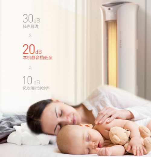 在工作运行中,空调噪音也非常小,不影响日常生活。在静音挡甚至可以低至20分贝,20分贝时什么概念呢?风吹树叶沙沙声是10分贝,轻声耳语为30分贝,因此20分贝静音挡非常适合睡眠时开启,不打扰休息。