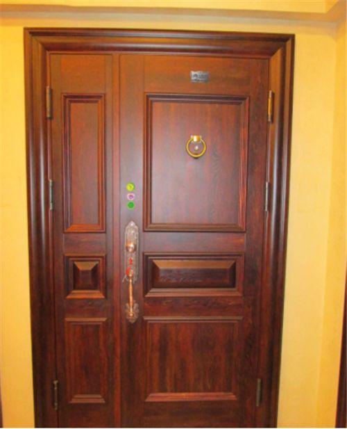购买防盗门时要选取防钻锁头,对于锁具要三方位锁闭组织,单开门要三个合页,而双开门必须要六个合页,门扇合门框要加上暗锁。