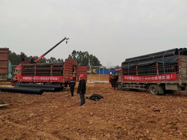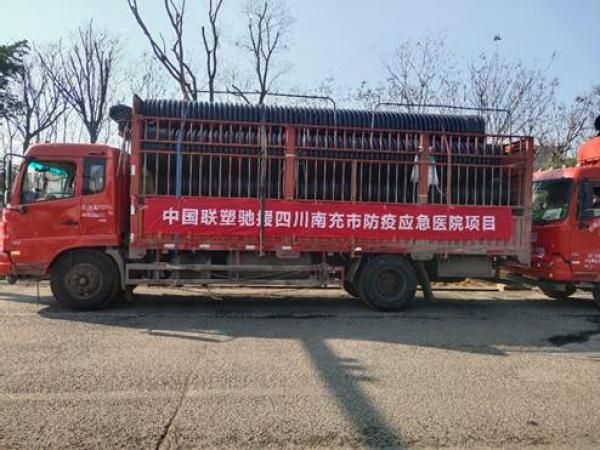 疫情当前,全力驰援。2月8日,中国联塑收到关于南充市应急隔离医院项目管材管件的需求后,应急专项小组紧急协调四川联塑人员、物资、仓储、物流等资源,与当地的红十字会机构进行多方面沟通协调。当晚以昼夜不休的态度将管材管件准备好,调度运输车辆,安排车辆进场,让捐赠的管材管件组织,交接工作快速而油条不问的进行,确保项目建设所需的给排水管材管件能以最快的速度运到现场。经过连夜的奋战准备,联塑集团向南充市应急医院建设项目捐赠的HDPE双壁波纹管、PE管等管材管件在2月9日通过近十辆大货车,满载四川联塑捐赠的物资抵达施工现场,协助医院尽快建成投入使用。