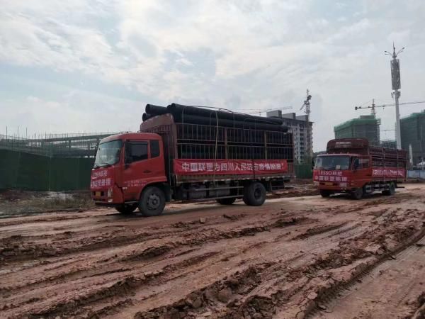 中国联塑捐赠管材管件运抵施工现场投入使用
