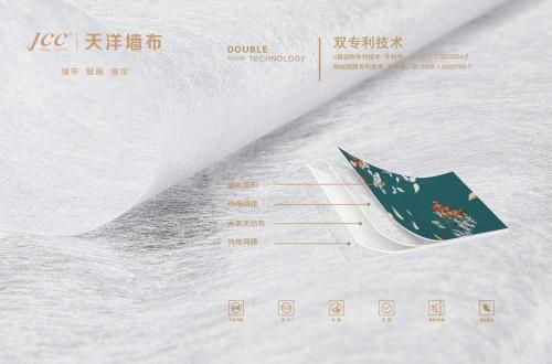 另外,JCC天洋墙布的特别之处在于,它将应用于高档服装、高档汽车的热熔胶粘接材料,运用于墙面装饰领域,研发出四层结构无缝墙布,用热熔网膜代替传统糯米胶水,创造性地赋予了墙布的绿色环保性,无异味,零甲醛,透气防霉,实现了“不用胶水、熨贴上墙”等系列创新,彻底解决了家装的环保问题。