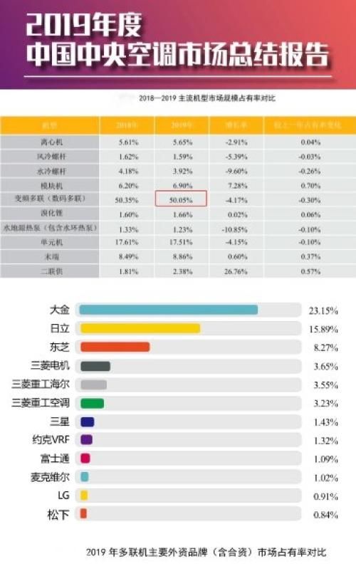 纵观行业,除了来自经济环境和政策的影响,家装零售市场还要面对由于库存高企引发的价格战、品牌竞争日益激烈等竞争局面。但这并不意味着多联机产品已经面临市场天花板,由于技术成熟并且具备节能、节省建筑空间、施工安装便捷、运行可靠以及可满足不同工况的使用要求等诸多优点,多联机空调系统在中央空调九大产品占有率中,依然占据举足轻重的位置。