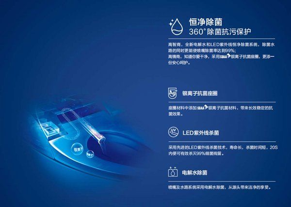 在使用马桶时,座圈是人体不可避免的“亲密接触”部位,而普通智能马桶虽然具备了“座圈加热”功能,但仍无法避免细菌在座圈上的滋生与繁殖。为了解决这个问题,恒洁Q9智能马桶在座圈材料中添加了日本抗菌协会认证“SIAA银离子抗菌材料”,有效抑制细菌滋生,且具有长效稳定的抗菌效果,更添一份安全呵护。